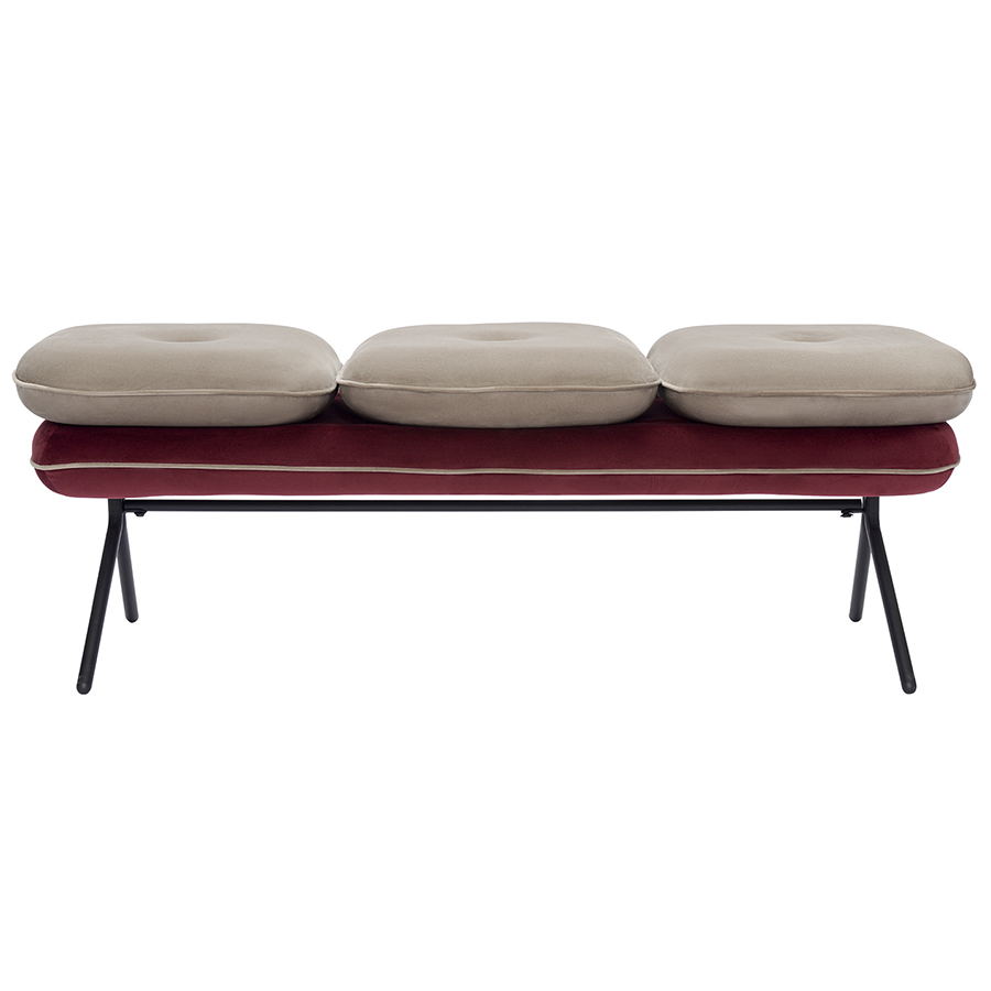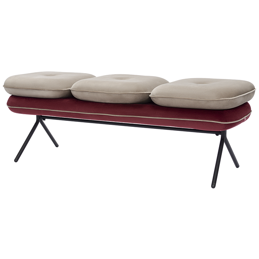 Банкетка Pea, велюр, бежевая/бордовая, Bergenson Bjorn