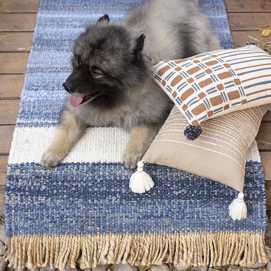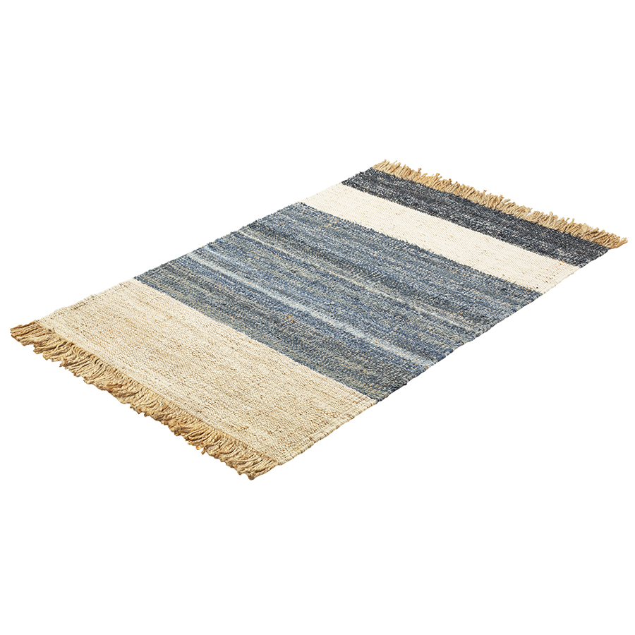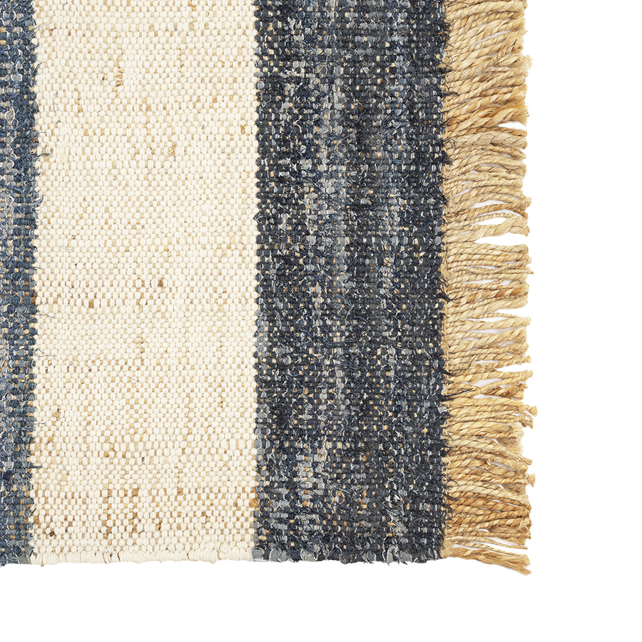 "Ковер Hyderabad из коллекции Ethnic отлично смотрится в современных интерьерах и эклектичных пространствах. Одним из главных достоинств дизайна является сочетание трех уникальных материалов. Джут делает это напольное покрытие практичным и долговечным, обеспечивая стойкость к износу и сохраняя его первоначальную форму на протяжении долгого времени. Деним добавляет в оформление модный акцент. Шерсть придает изделию мягкость, создавая приятное ощущение под ногами. Благодаря натуральной цветовой палитре ковер прекрасно гармонирует с мебелью и предметами интерьера любых оттенков.