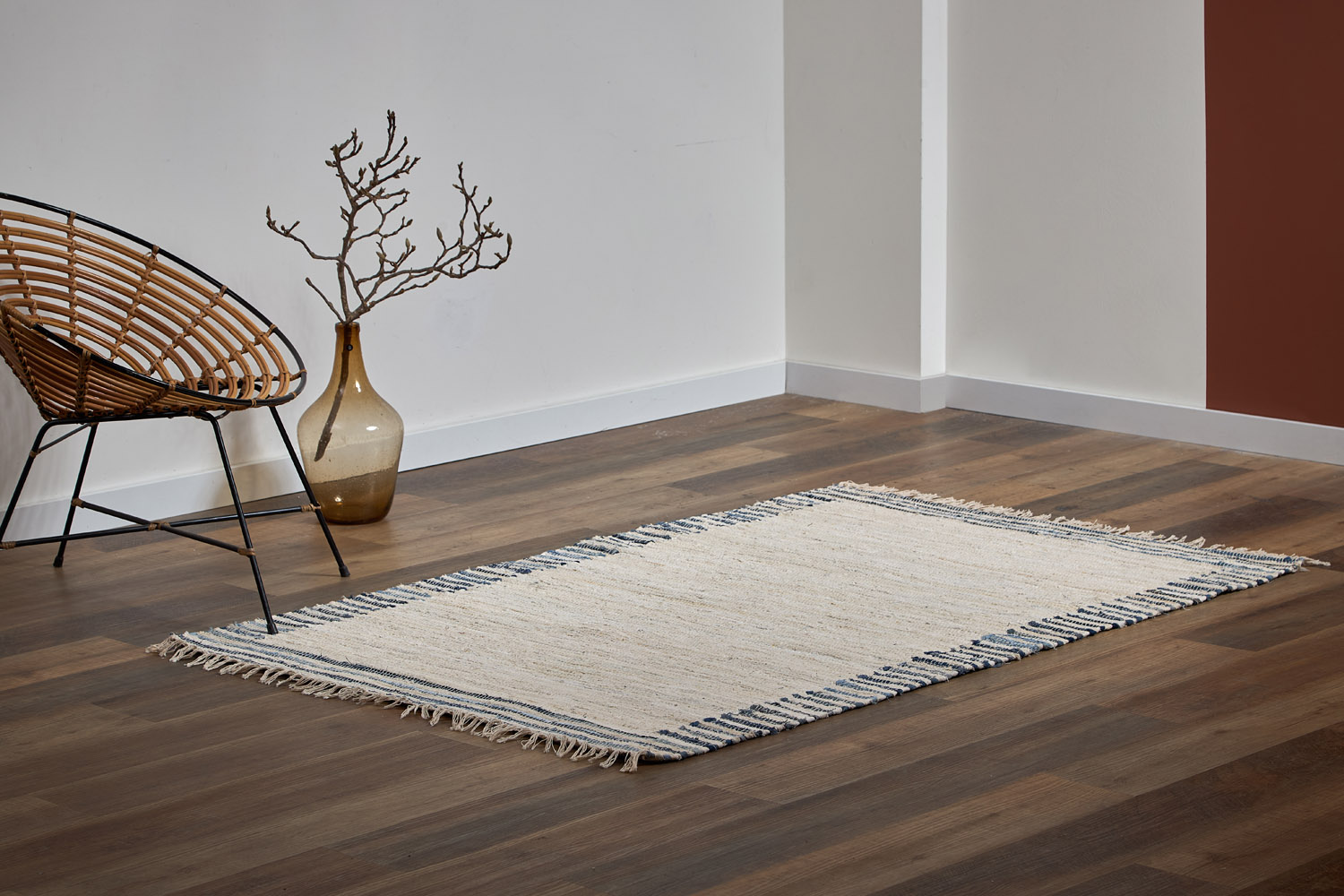 - Ковер из хлопка отлично сохраняет тепло и обладает звукоизоляционными свойствами, обеспечивая в помещении комфортную атмосферу.
