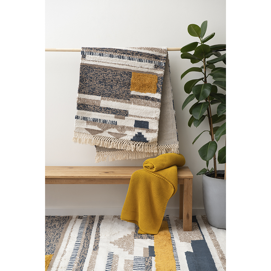 "Ковер из хлопка Kochi из коллекции Ethnic впишется в любой интерьер и станет необычным акцентом. Оригинальное и практичное изделие с тканым геометрическим орнаментом в абстрактном стиле украшено плетеной бахромой по коротким сторонам. Ковер представлен в двух размерах.
