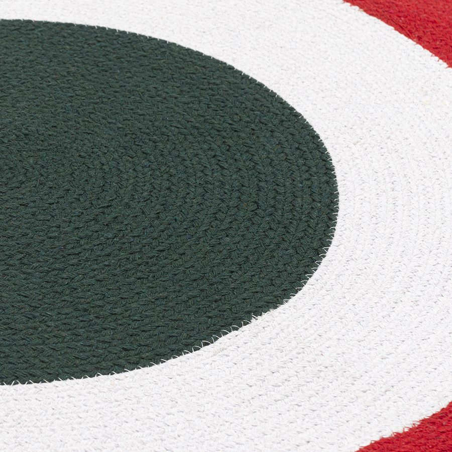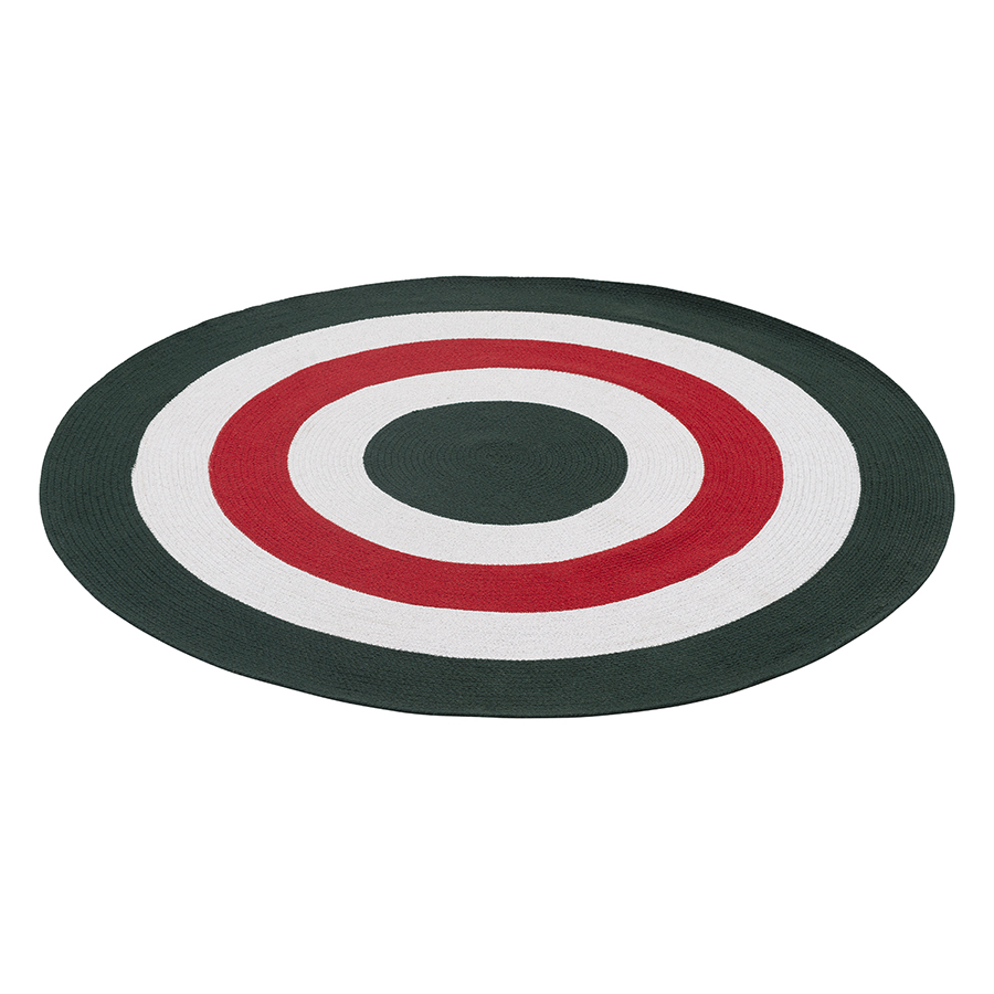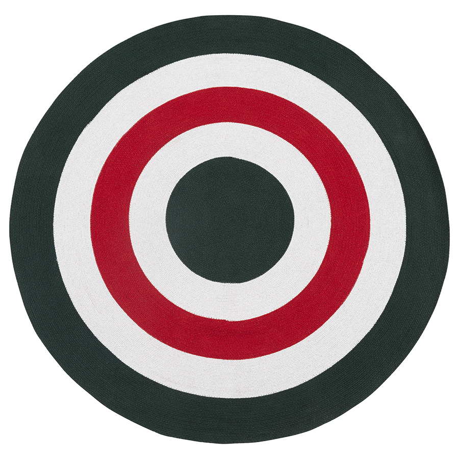 "Ковер из хлопка Target темно-зеленого цвета из коллекции Ethnic прекрасно подойдет для создания в помещении уютной атмосферы. Изделие округлой формы привнесет в оформление комнаты ощущение гармонии и легкости. Контрастный узор позволит сделать акцент на ярких элементах интерьера. Изделие из натурального материала отличается экологичностью, высокой прочностью, устойчивостью к износу, не вызывает аллергию. Плотность - 1400 GSM.