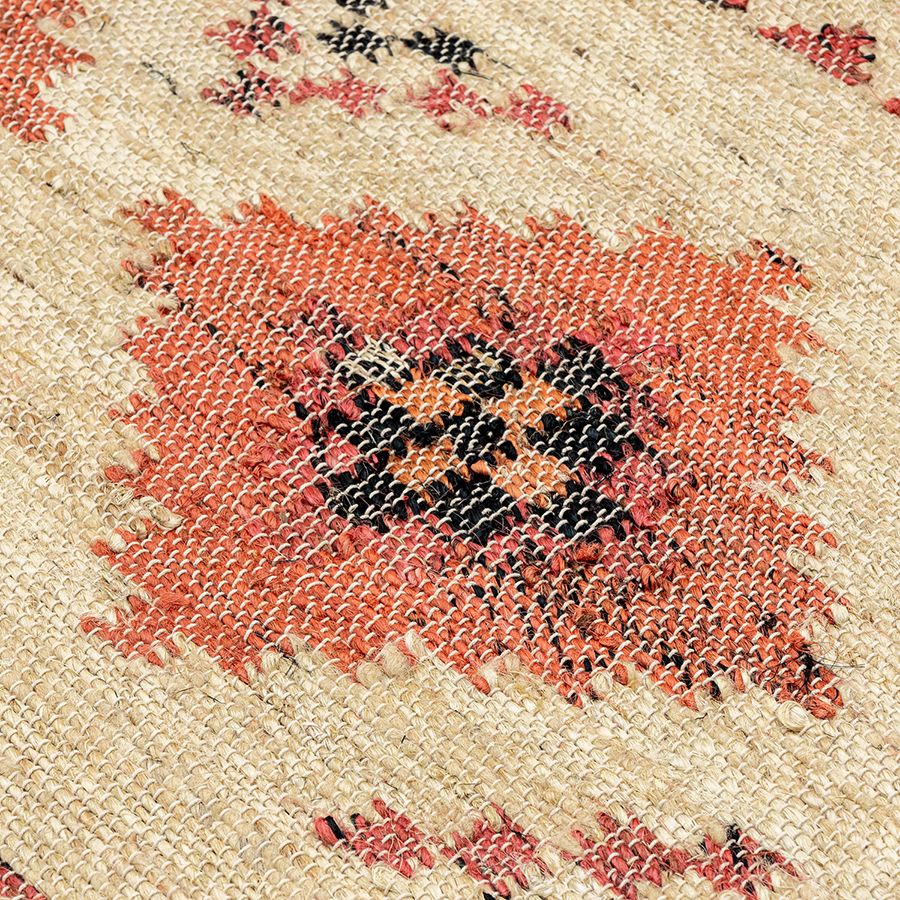 - Ковер с контрастным узором в этническом стиле привлекает внимание и может использоваться в качестве акцентного элемента.