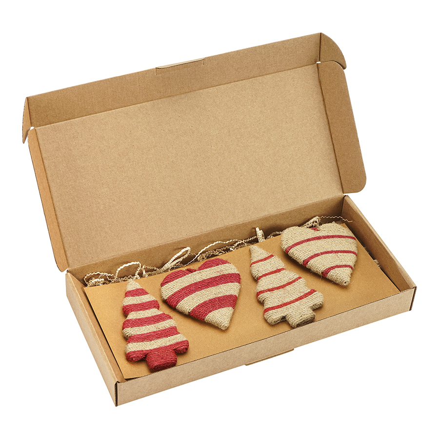 Материалы: джут, картон. Размеры украшений: 8х1,2х14 см, 10,5х1,2х10,8 см. Количество украшений в наборе: 4 шт."