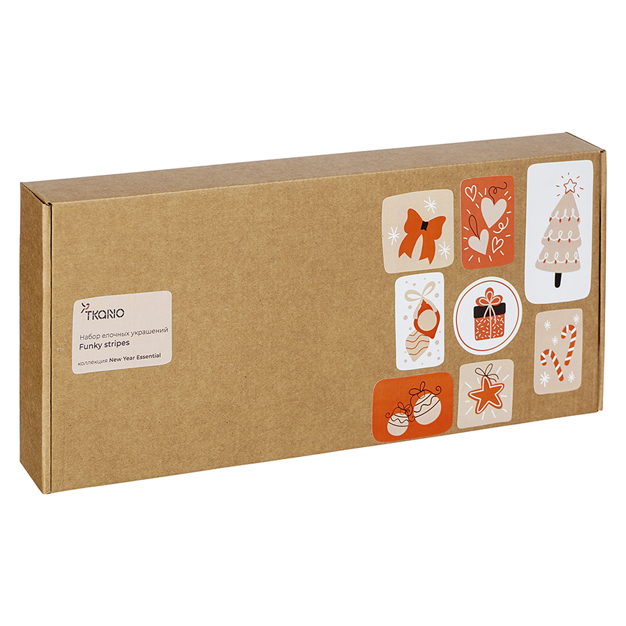 Набор елочных украшений Funky stripes из джута и гофрированного картона из коллекции New Year Essential, 4 шт., Tkano
