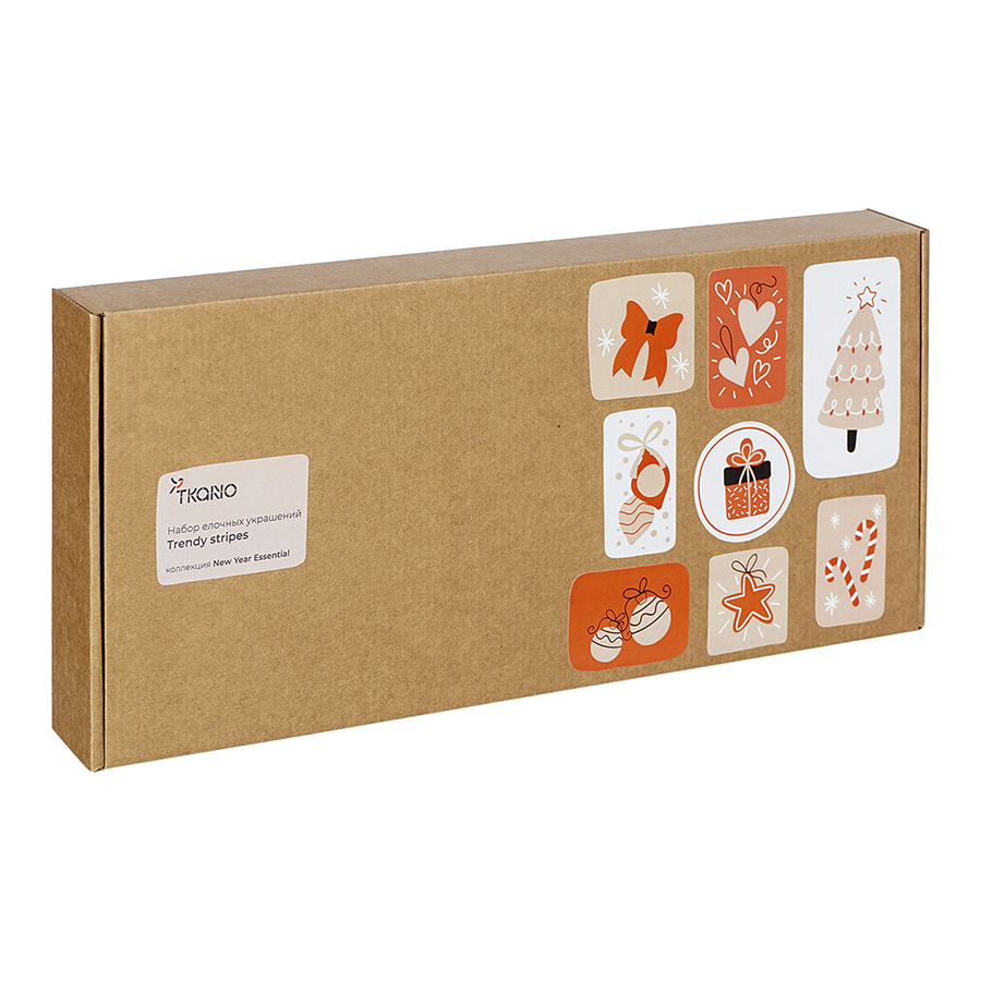 Набор елочных украшений Trendy stripes из джута и гофрированного картона из коллекции New Year Essential, 4 шт., Tkano