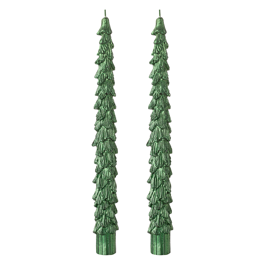 Набор из двух свечей зеленого цвета из коллекции New Year Essential, 26 см, Tkano