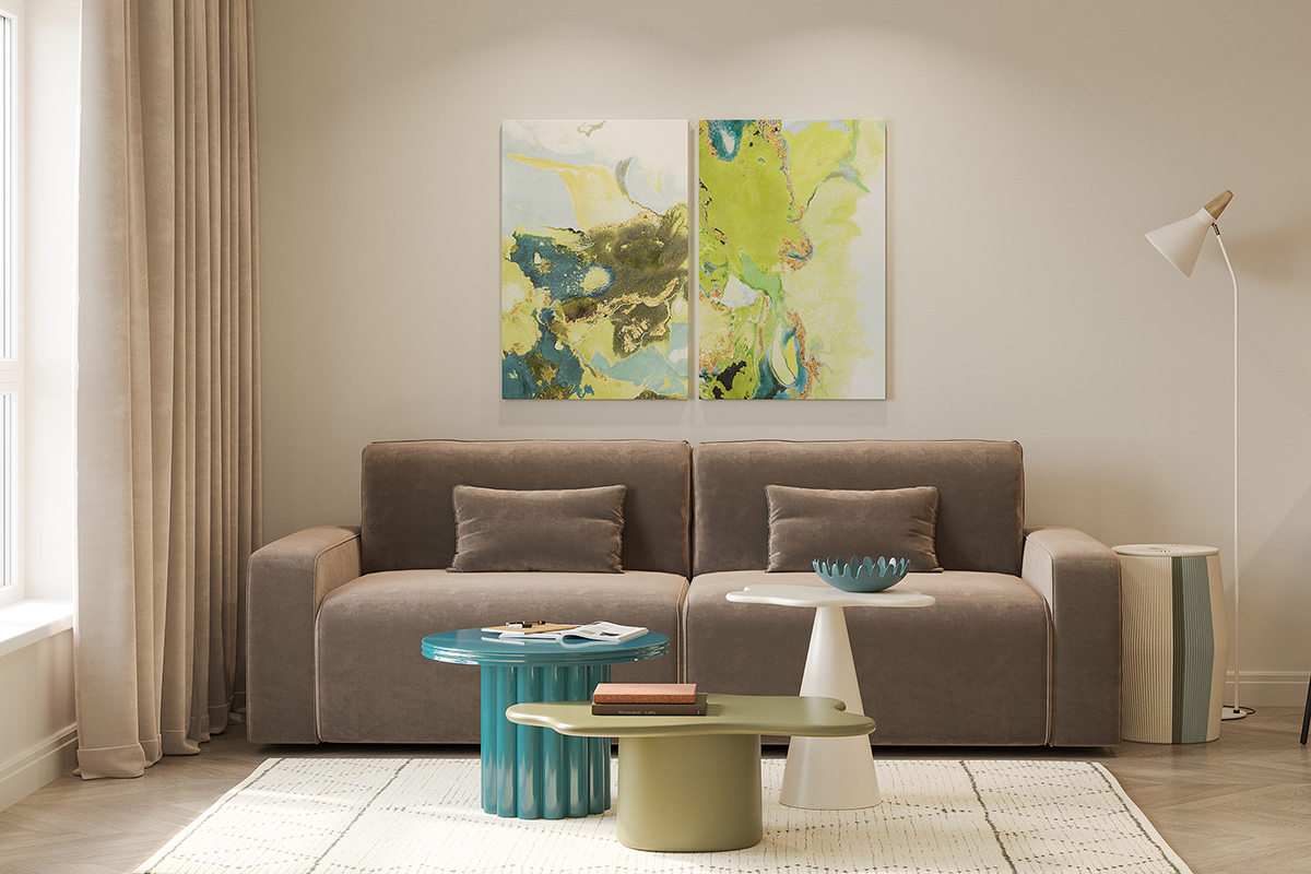 - Экологичные и долговечные материалы – холст, дерево.