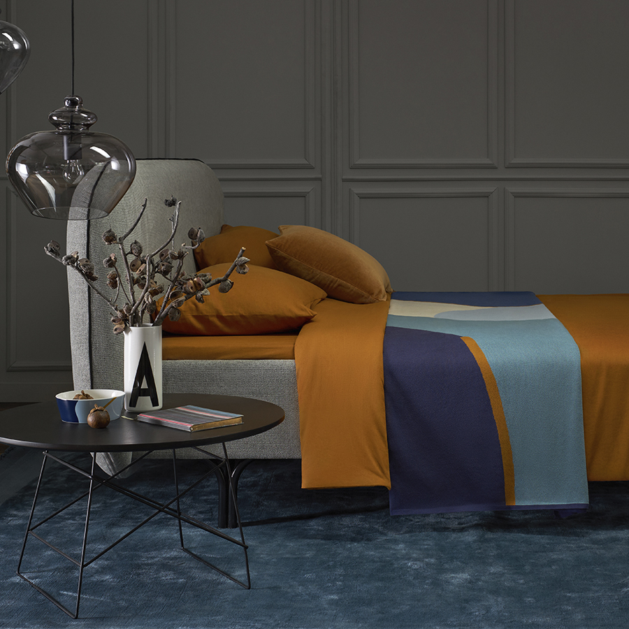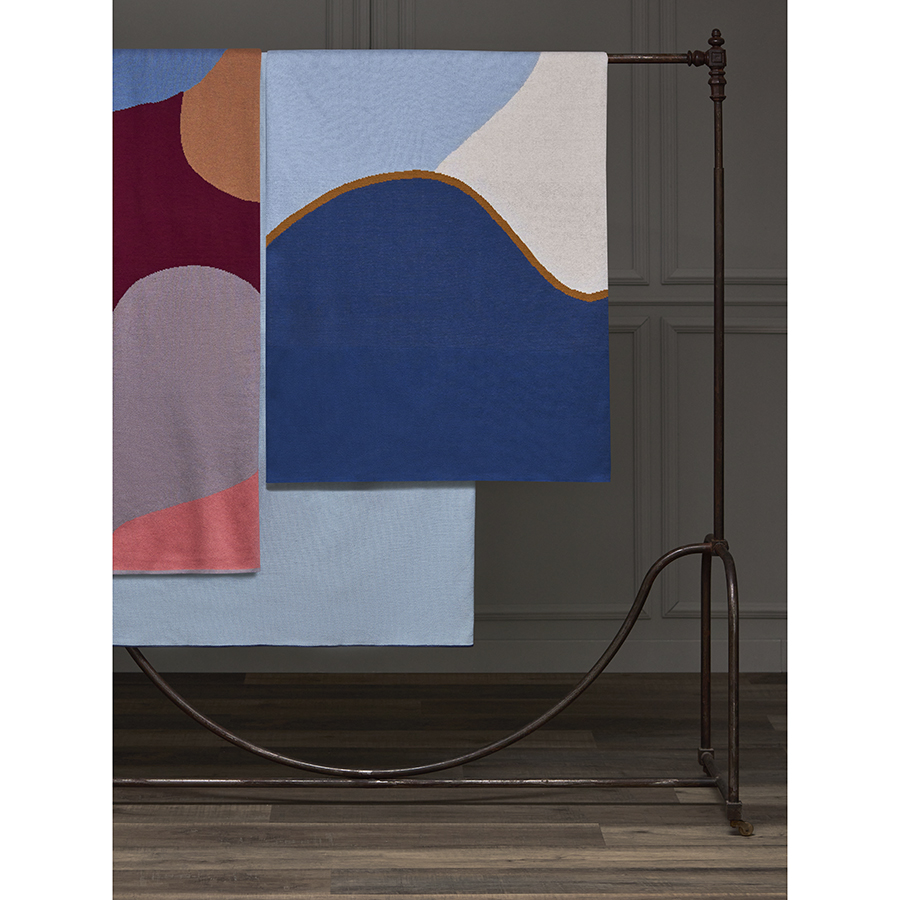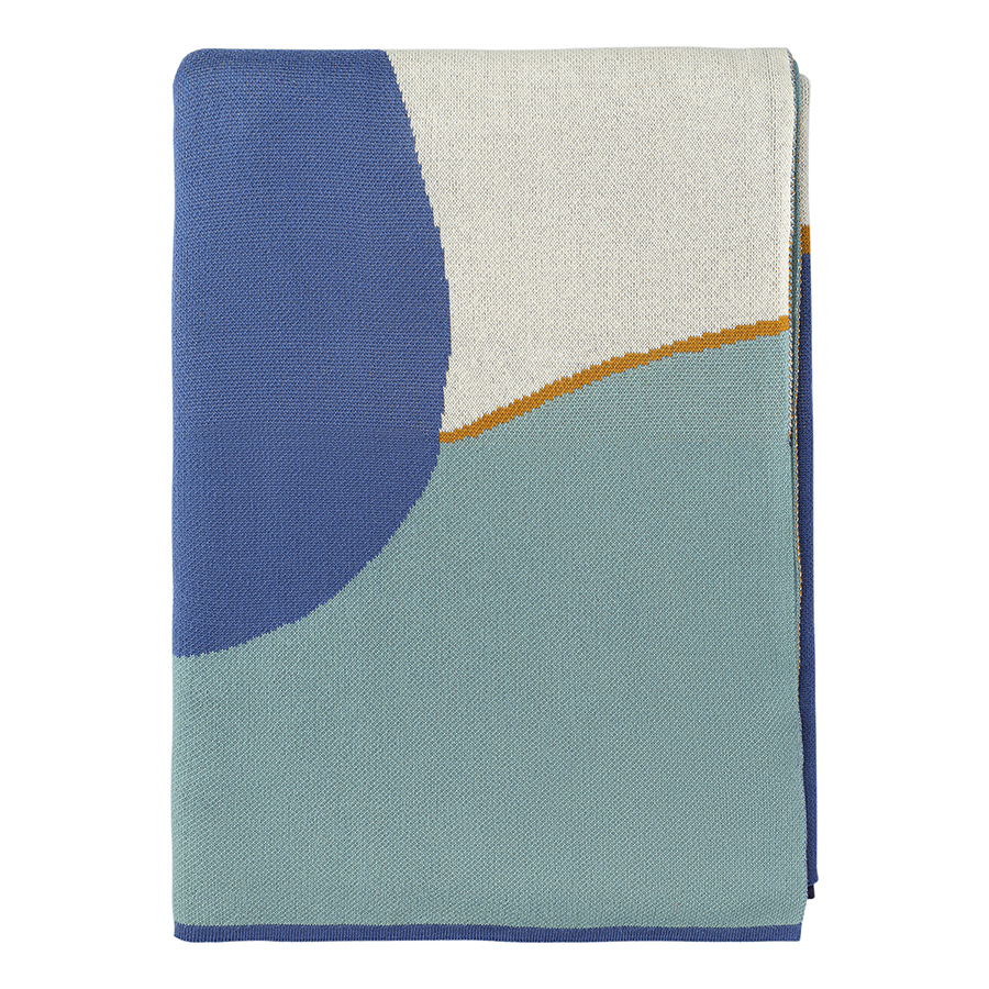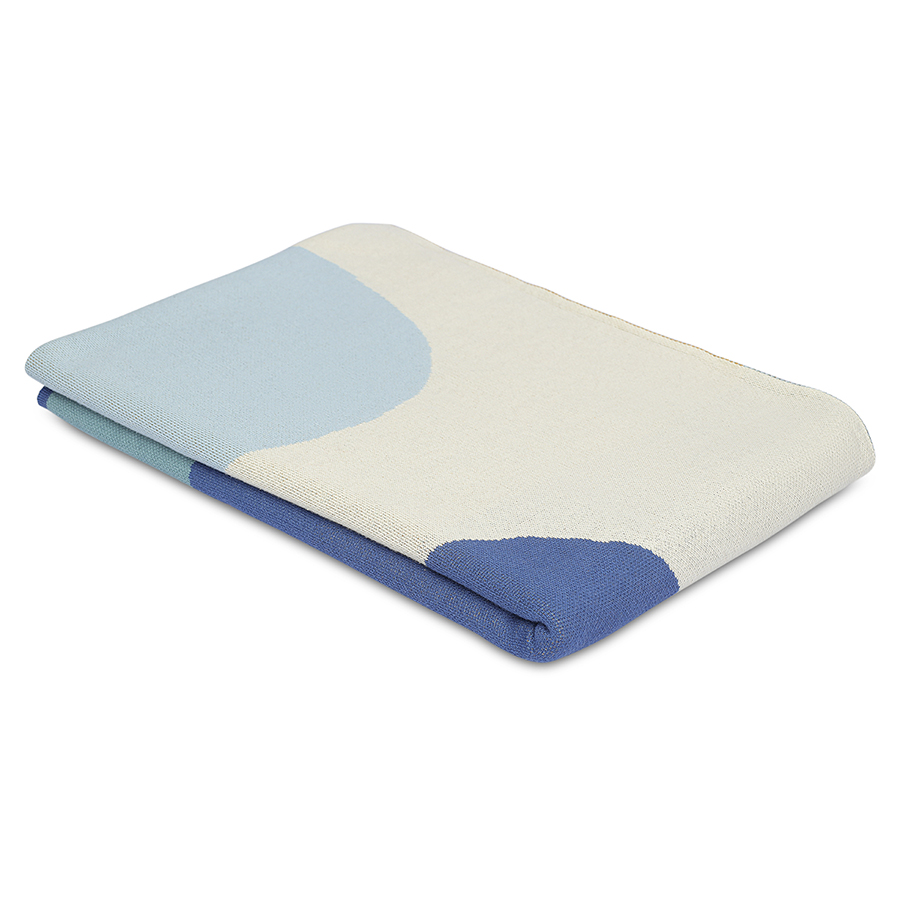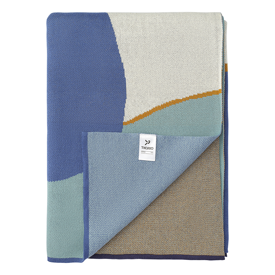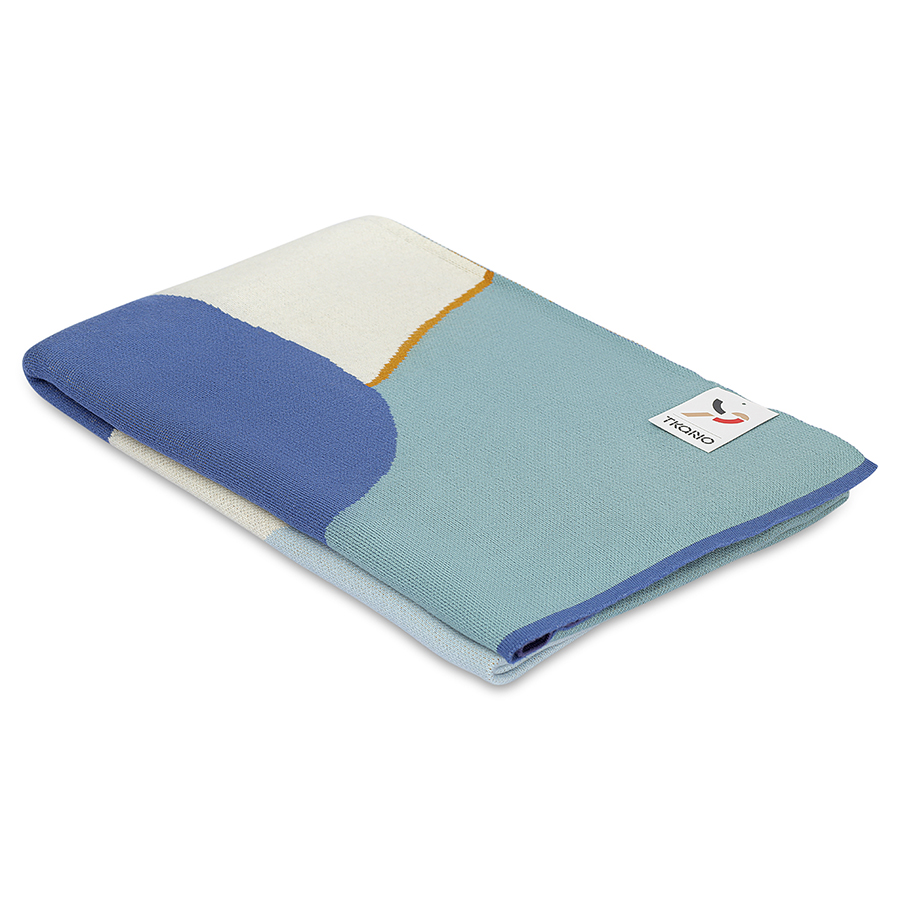Плед из хлопка с авторским принтом синего цвета из коллекции Freak Fruit, 130х180 см, Tkano