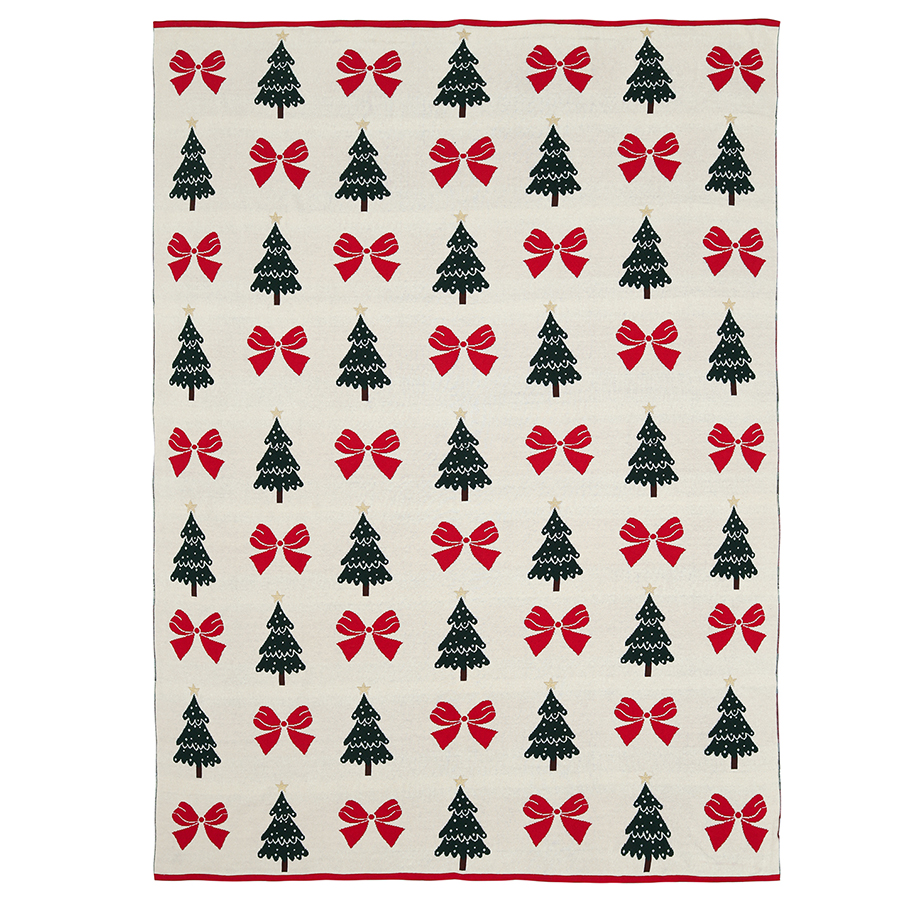 Плед из хлопка с новогодним рисунком Christmas Bows из коллекции New Year Essential, 130x180 см, Tkano