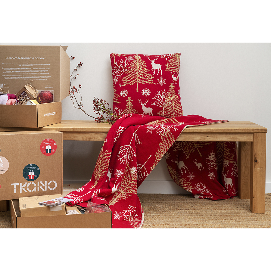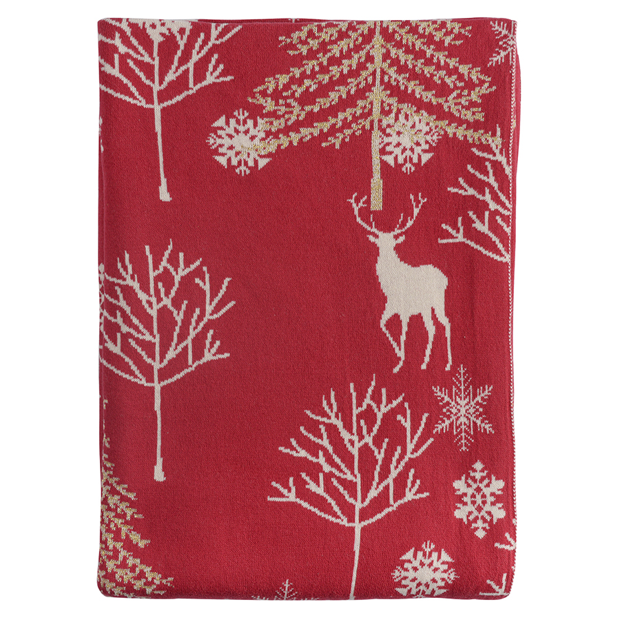 Плед из хлопка с новогодним рисунком Winter fairytale из коллекции New Year Essential, 130х180 см, Tkano
