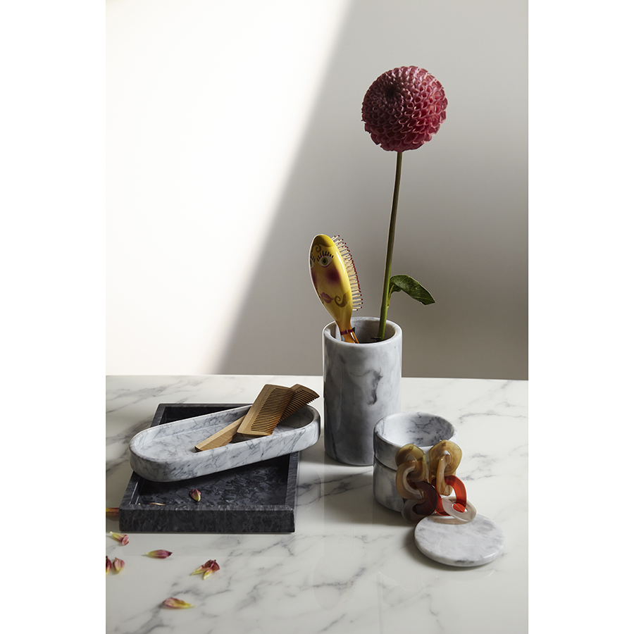 Коллекция Marm сочетает в себе естественную красоту природных материалов и утонченность классического дизайна. Аксессуары из мрамора привносят в оформление интерьера нотки элегантности, подчеркивая безупречный вкус хозяев дома. Уникальные узоры и оттенки натурального камня делают каждый предмет неповторимым.