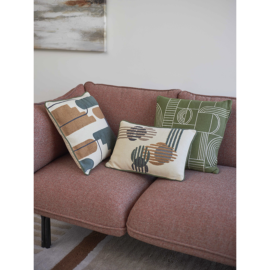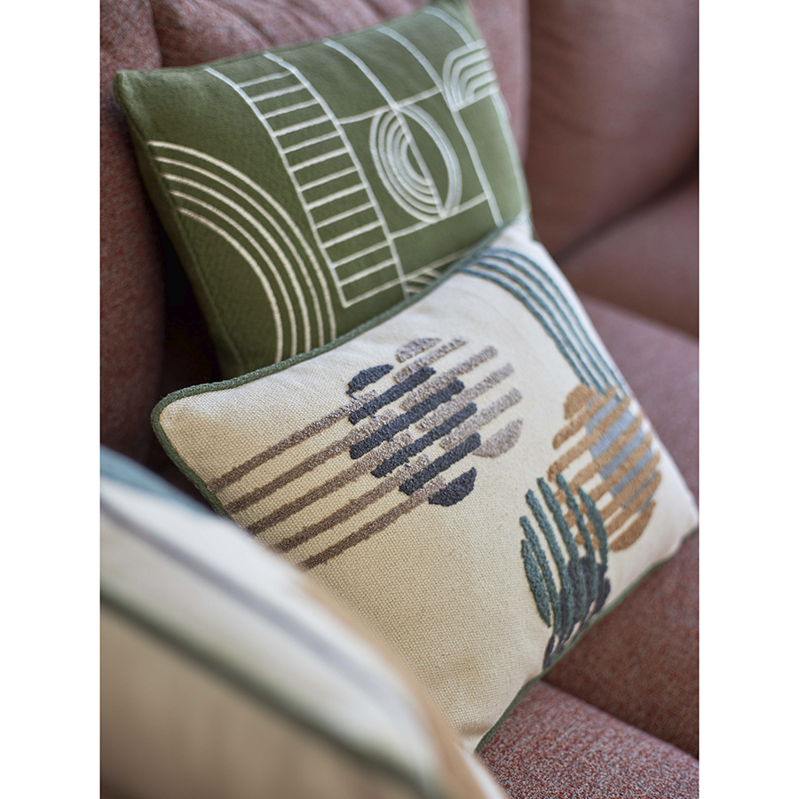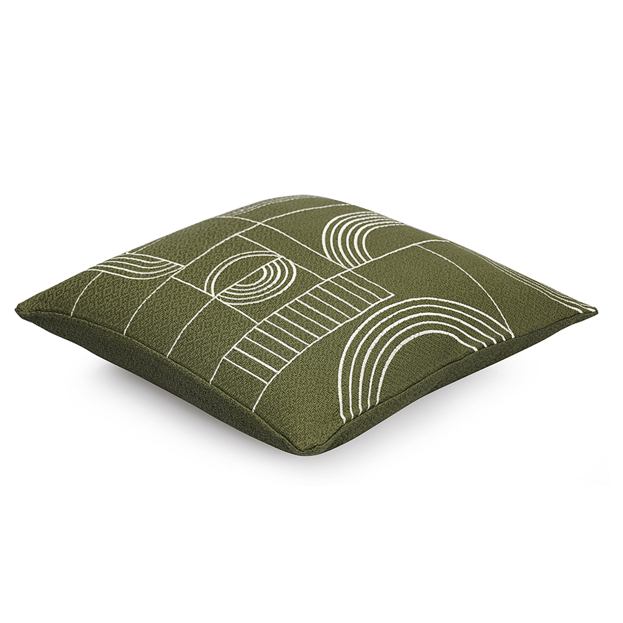 "Подушка декоративная Cave maze из коллекции Ethnic сделает интерьер спальни или гостиной стильным, уютным и комфортным. Геометрический принт отлично сочетается с растительными мотивами и современным декором, привносит в оформление пространства динамику и свежие акценты.