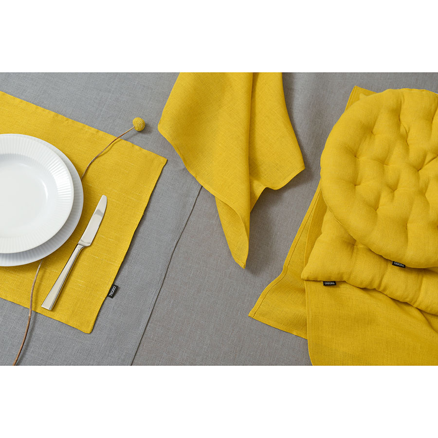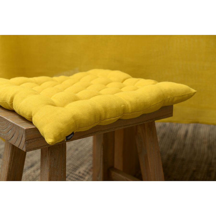Подушка на стул из стираного льна горчичного цвета из коллекции Essential, 40х40x4 см, Tkano