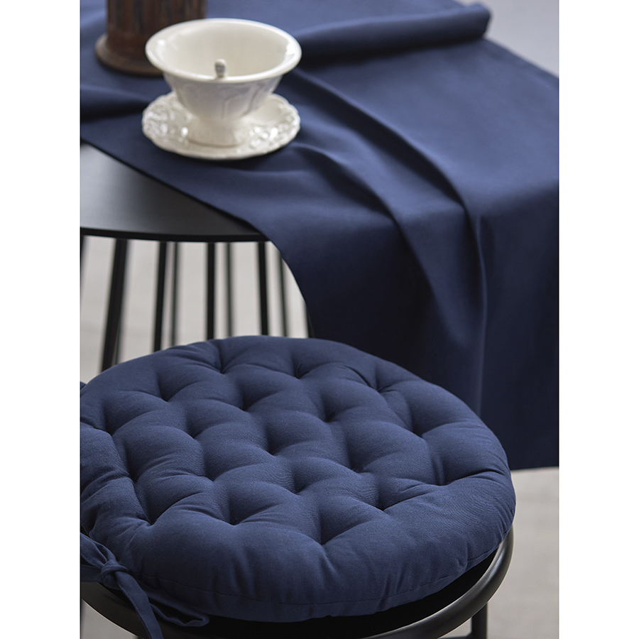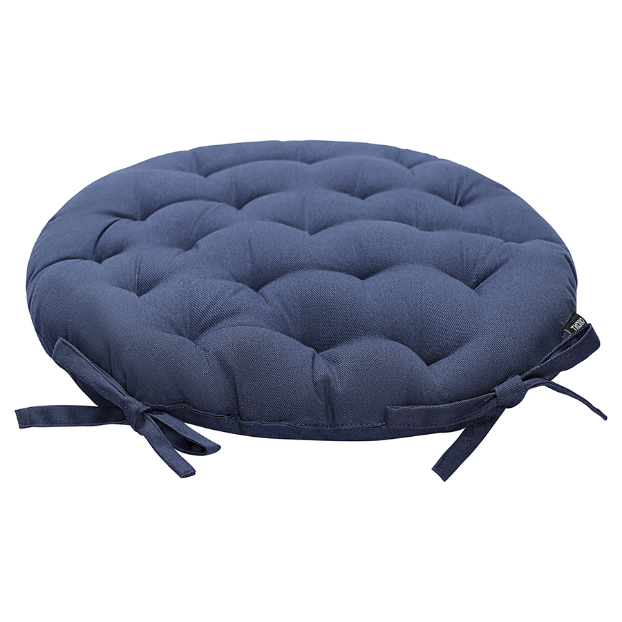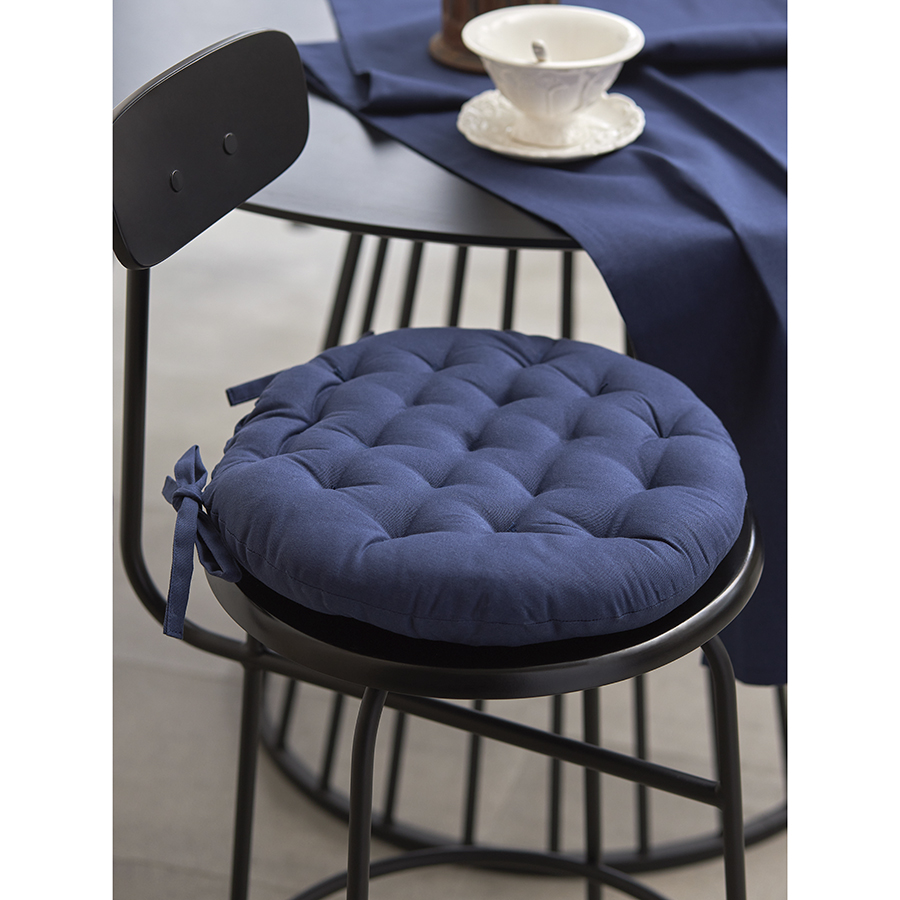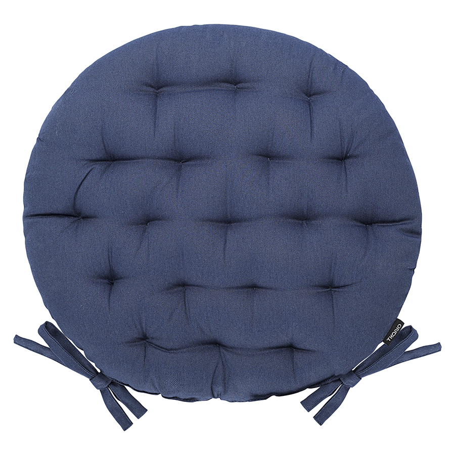 Подушка на стул круглая из хлопка темно-синего цвета из коллекции Essential, 35 см, Tkano