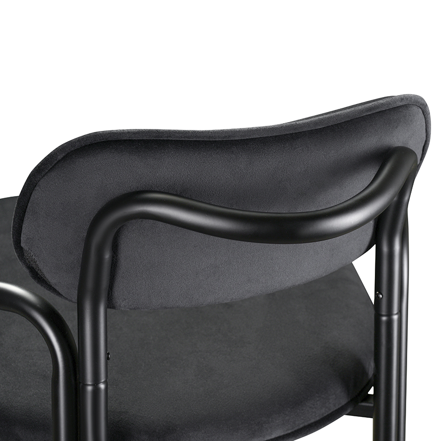 Стальное основание с порошковым покрытием делает конструкцию прочной и надежной, а мягкий велюр с бархатистой текстурой обеспечивает тактильный комфорт. Ткань обивки обладает высокими показателями износостойкости. Используемый в качестве наполнителя пенополиуретан отличается комфортной плотностью и жесткостью.