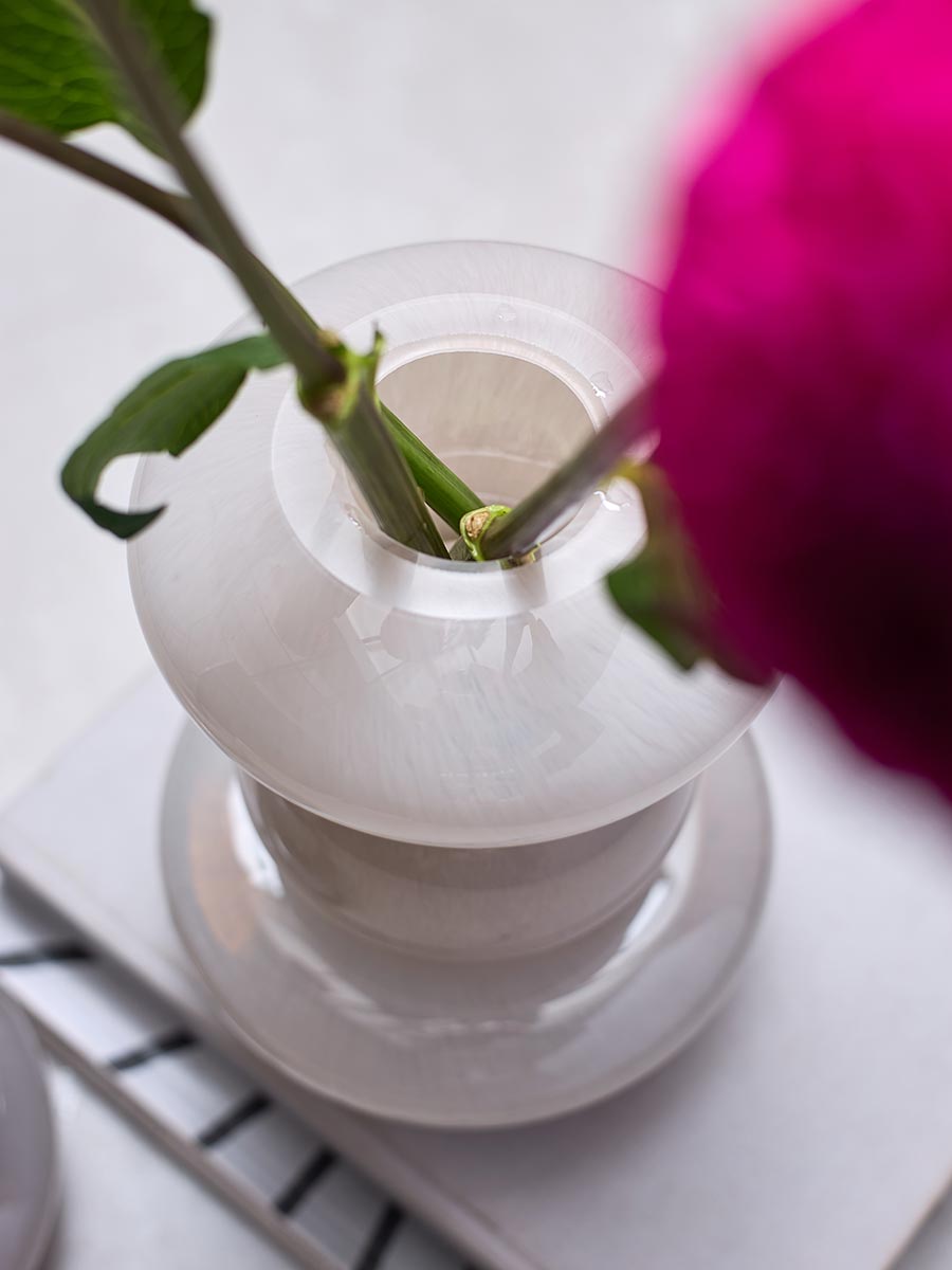 - Благодаря легкому градиенту цвета стеклянные стенки пропускают солнечный свет, но защищают стебли цветов от губительного ультрафиолета.