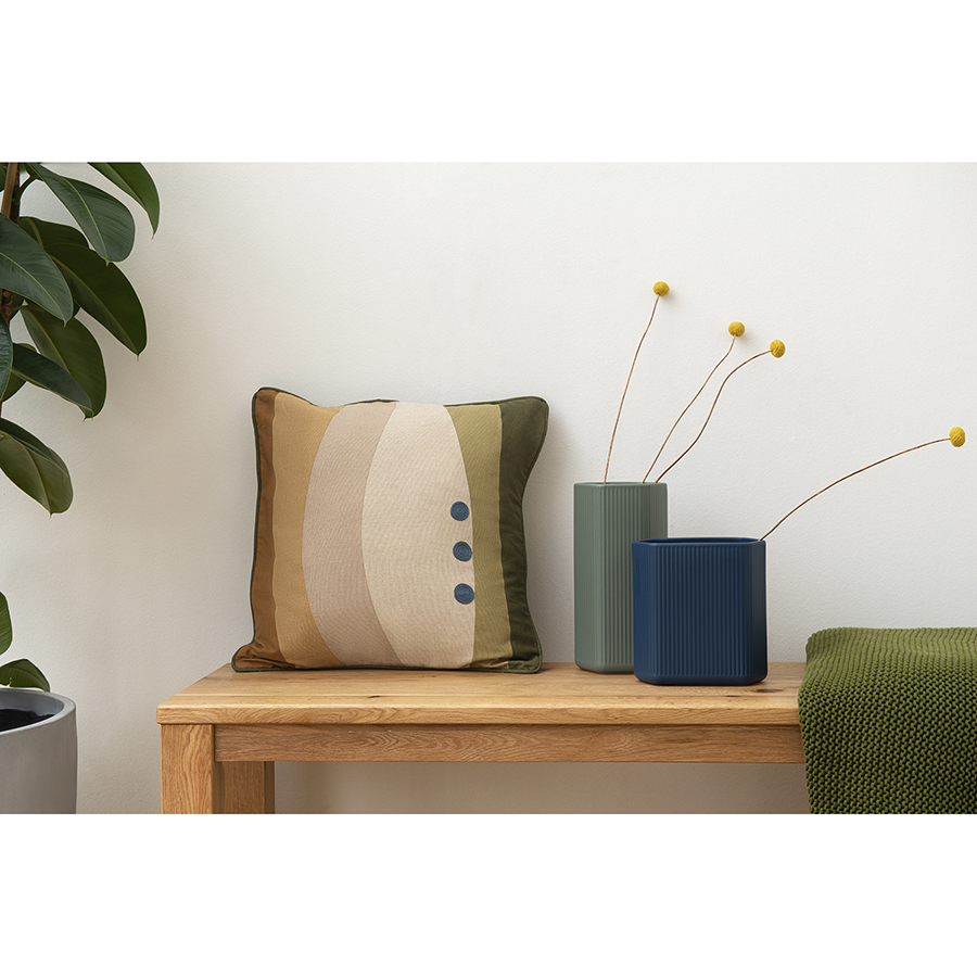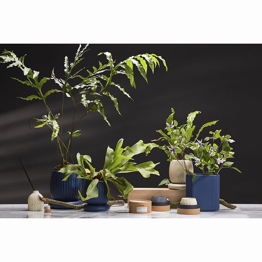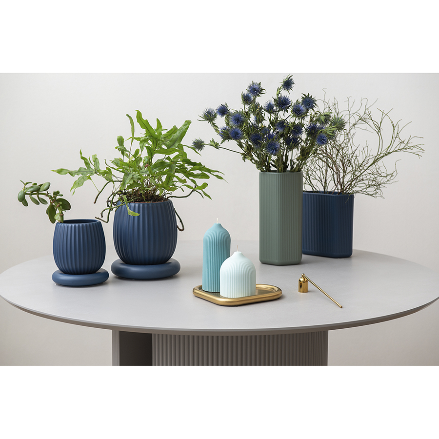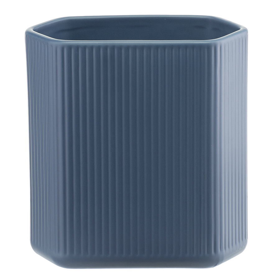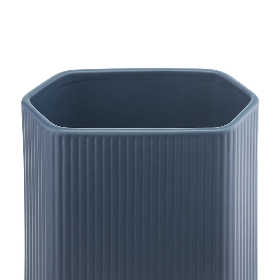 "Ваза темно-синего цвета из коллекции Edge подойдет как для букетов из живых цветов, так и для сухоцветов. Простая форма вазы с фактурными гранями будет сочетаться с другими предметами из этой же коллекции, позволяя создавать интересные интерьерные композиции. Изделие выполнено из доломита, устойчивого к сколам, легкого и экологически чистого материала, снаружи и внутри покрыто матовой глазурью.